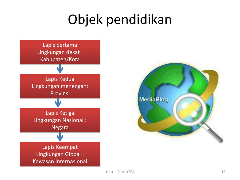Objekpendidikan Lapis pertama Lingkungandekat : Kabupaten/Kota Lapis Kedua Lingkunganmenengah: Provinsi Lapis Ketiga LingkunganNasional : Negara Lapis Keempat Lingkungan Global : Kawasaninternasional Hasrul Bakri YSGI