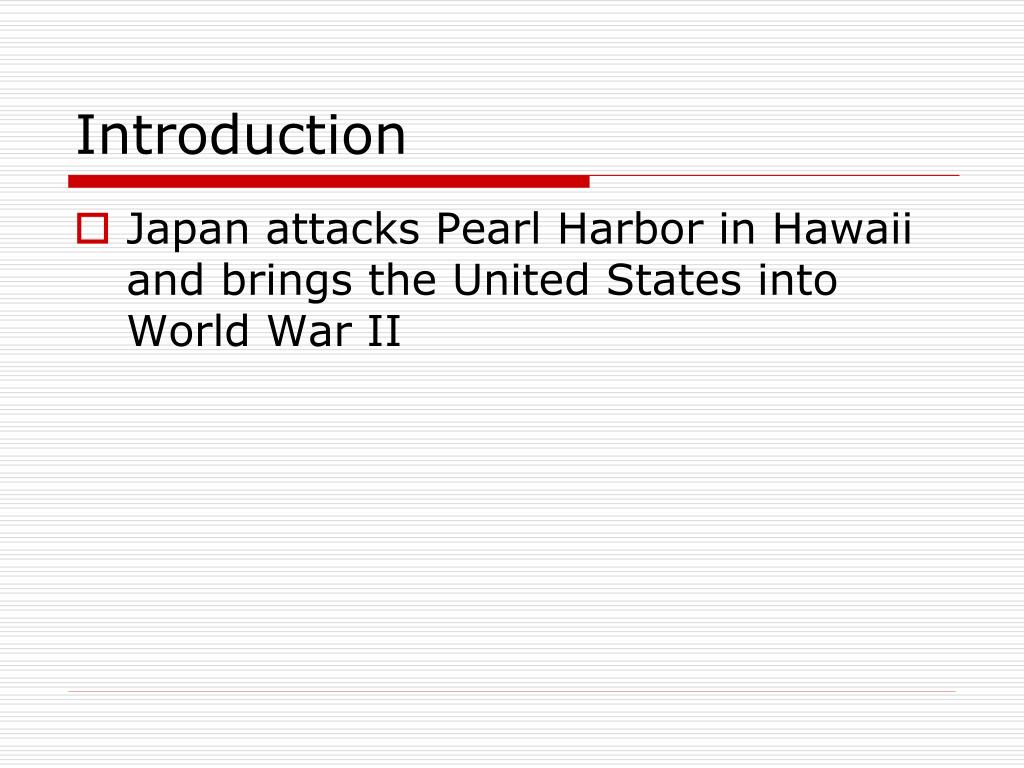Introduction • Japan attacks Pearl Harbor in Hawaii and brings the United States into World War II