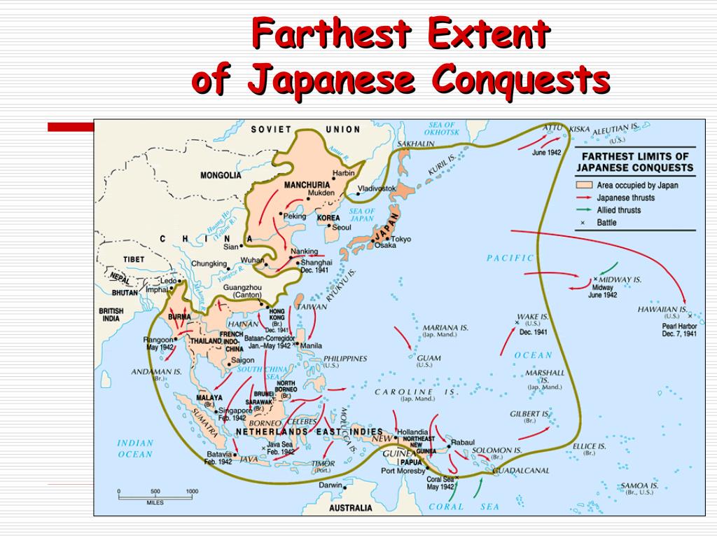 Japan was busy conquering an empire that dwarfed Hitler’s Third Reich Japan had conquered much of southeast Asia including the Dutch East Indies, Guam, and most of China