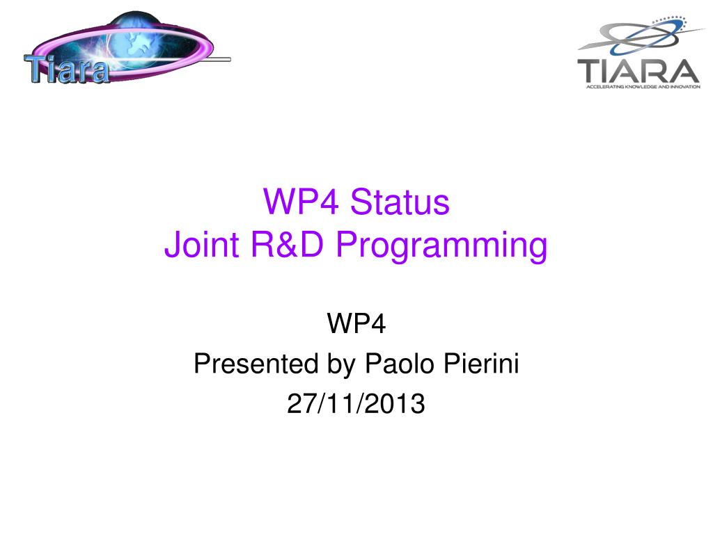 WP4 StatusJoint R&D Programming WP4 Presented by Paolo Pierini 27/11/2013