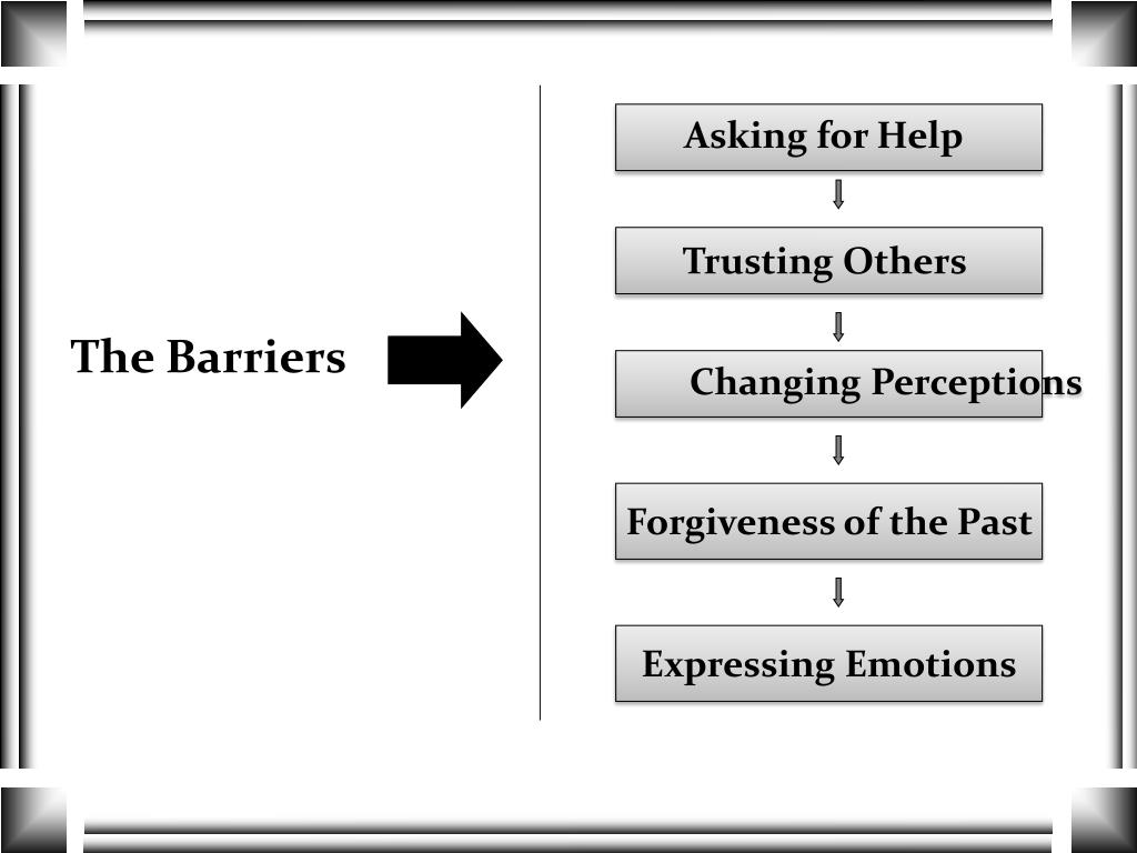 Asking for Help Trusting Others The Barriers • Changing Perceptions Forgiveness of the Past Expressing Emotions