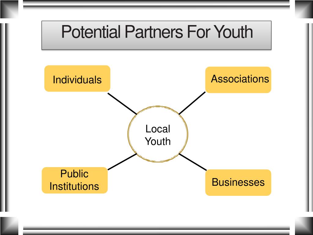 Potential Partners For Youth Associations Individuals Individuals Local Youth Public Institutions Businesses