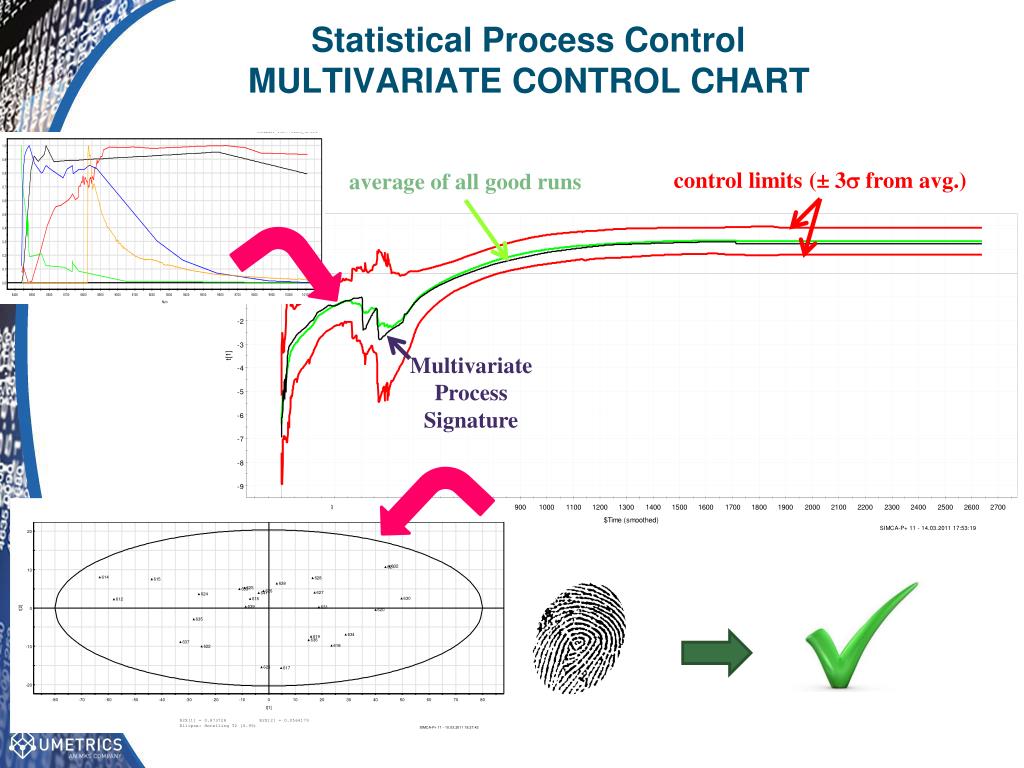 Statistical Process Control MULTIVARIATE CONTROL CHART control limits (± 3s from avg.) average of all good runs Multivariate Process Signature