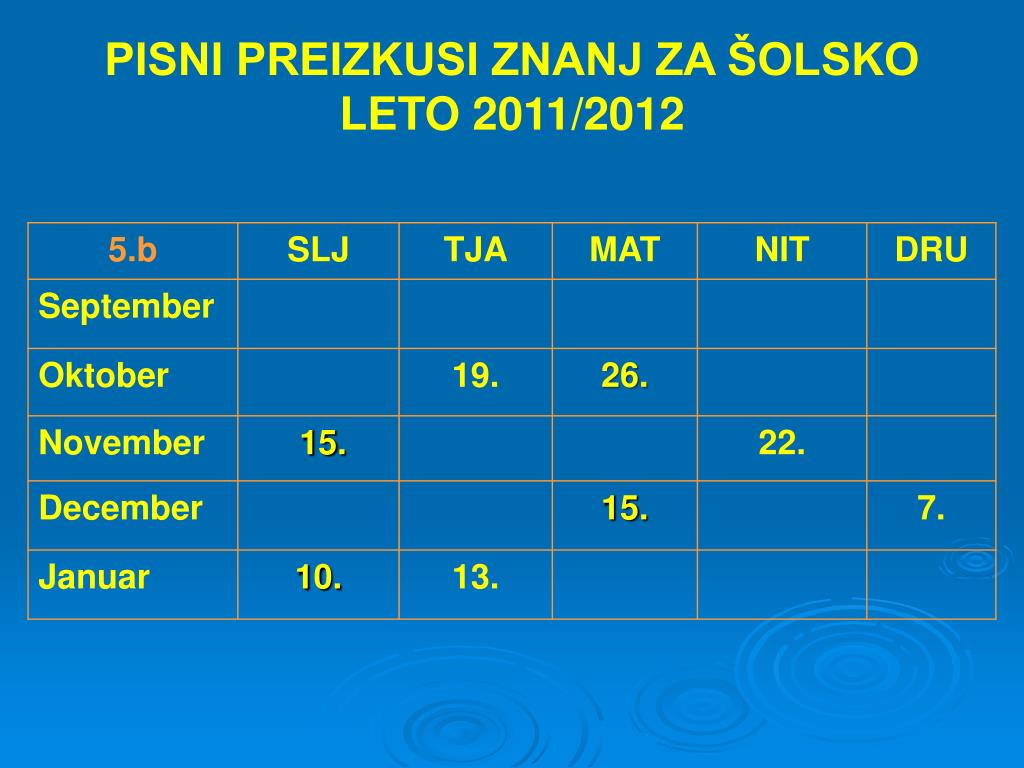 5. B ŠOLSKO LETO 2011/2012 14 učencev: • 5 deklic • 9 dečkov