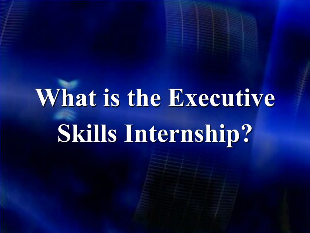 Executive: One that exercises administrative or managerial control. Skills: The ability to use one's knowledge effectively and readily in execution or performance. Internship: An advanced student or graduate usually in a professional field gaining supervised practical experience. Source: Merriam Webster Dictionary, www.m-w.com
