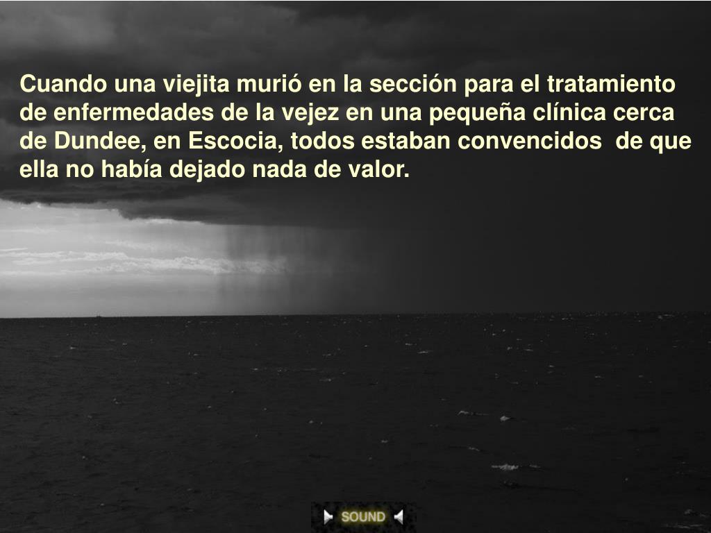 Cuando una viejita murió en la sección para el tratamiento de enfermedades de la vejez en una pequeña clínica cerca de Dundee, en Escocia, todos estaban convencidos de que ella no había dejado nada de valor.