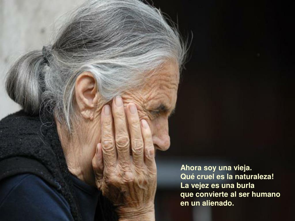 Ahora soy una vieja. Qué cruel es la naturaleza! La vejez es una burla que convierte al ser humano en un alienado.