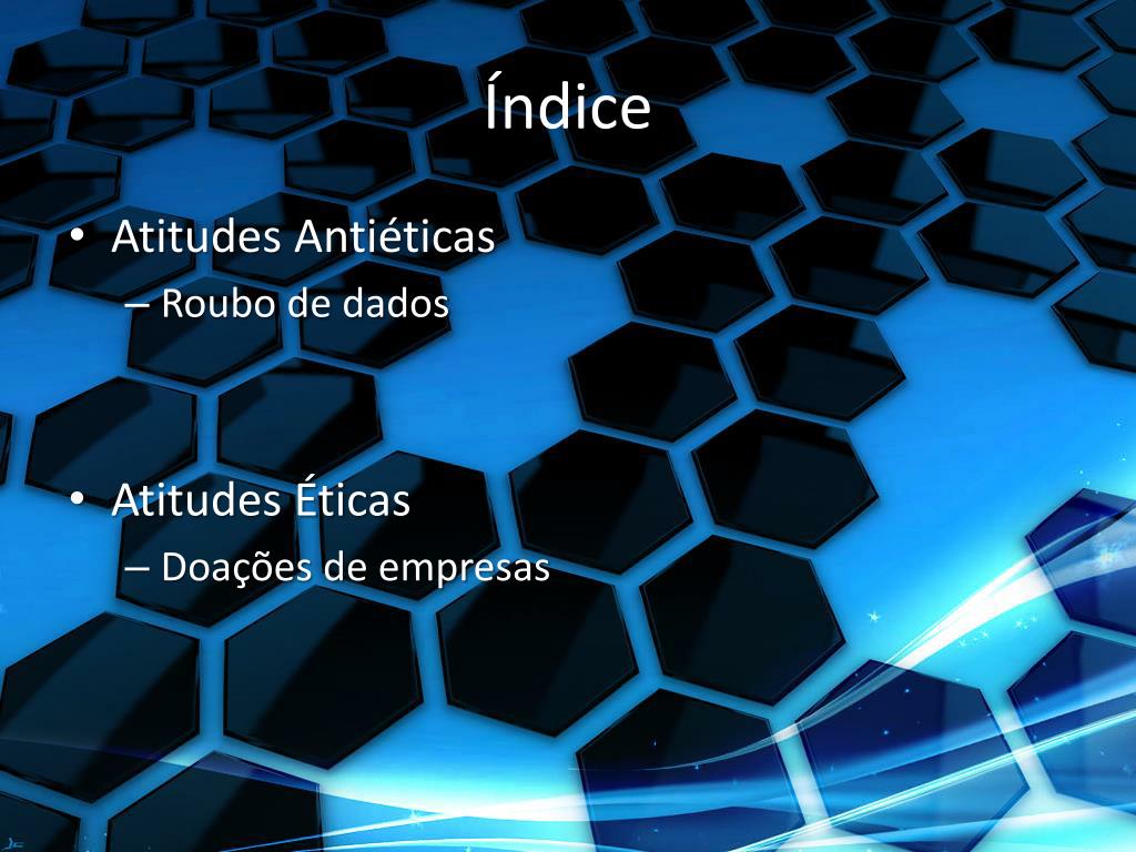 Índice • Atitudes Antiéticas • Roubo de dados • Atitudes Éticas • Doações de empresas