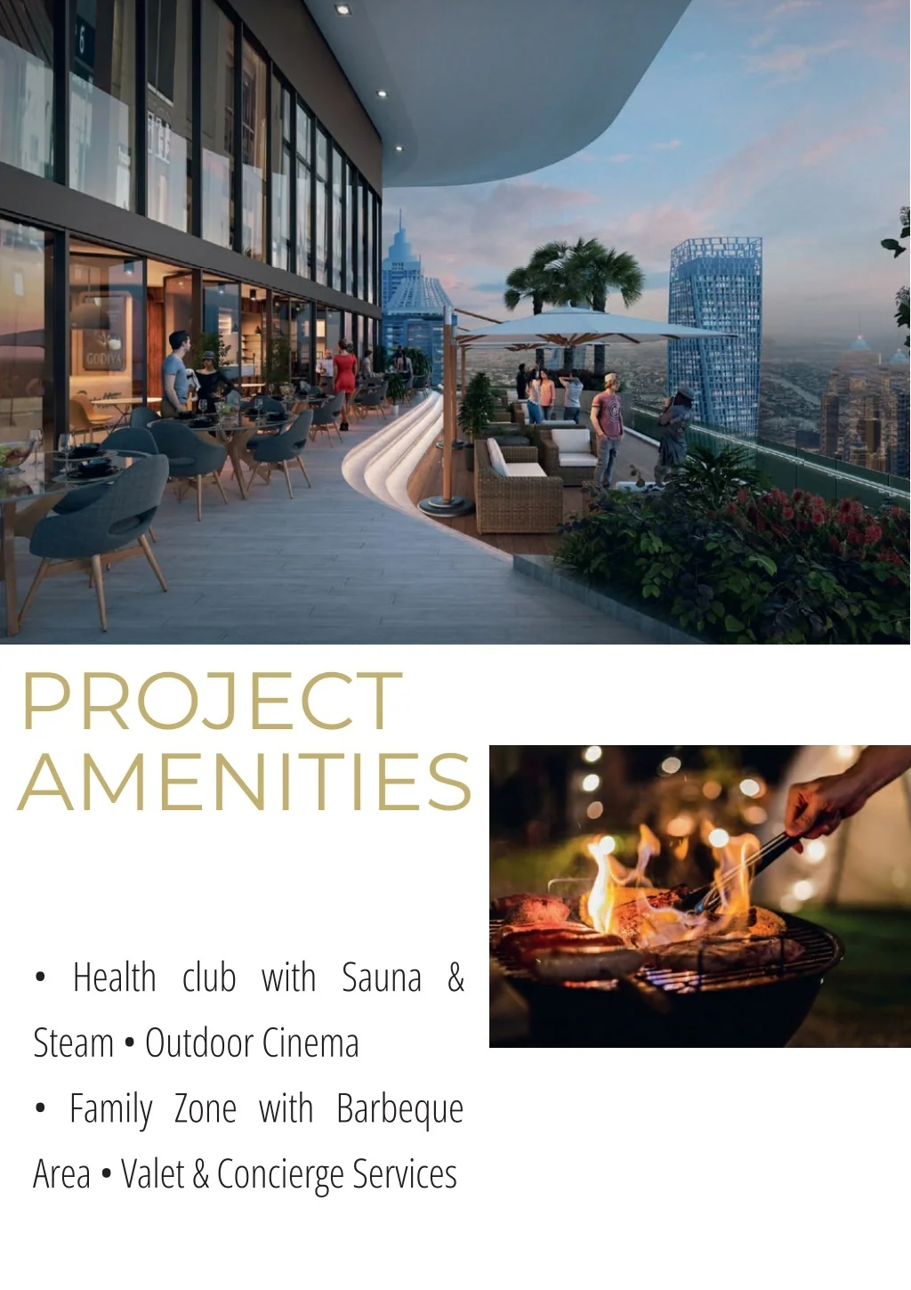PROJECT AMENITIES • Health club with Sauna & Steam • Outdoor Cinema • Family Zone with Barbeque Area • Valet & Concierge Services