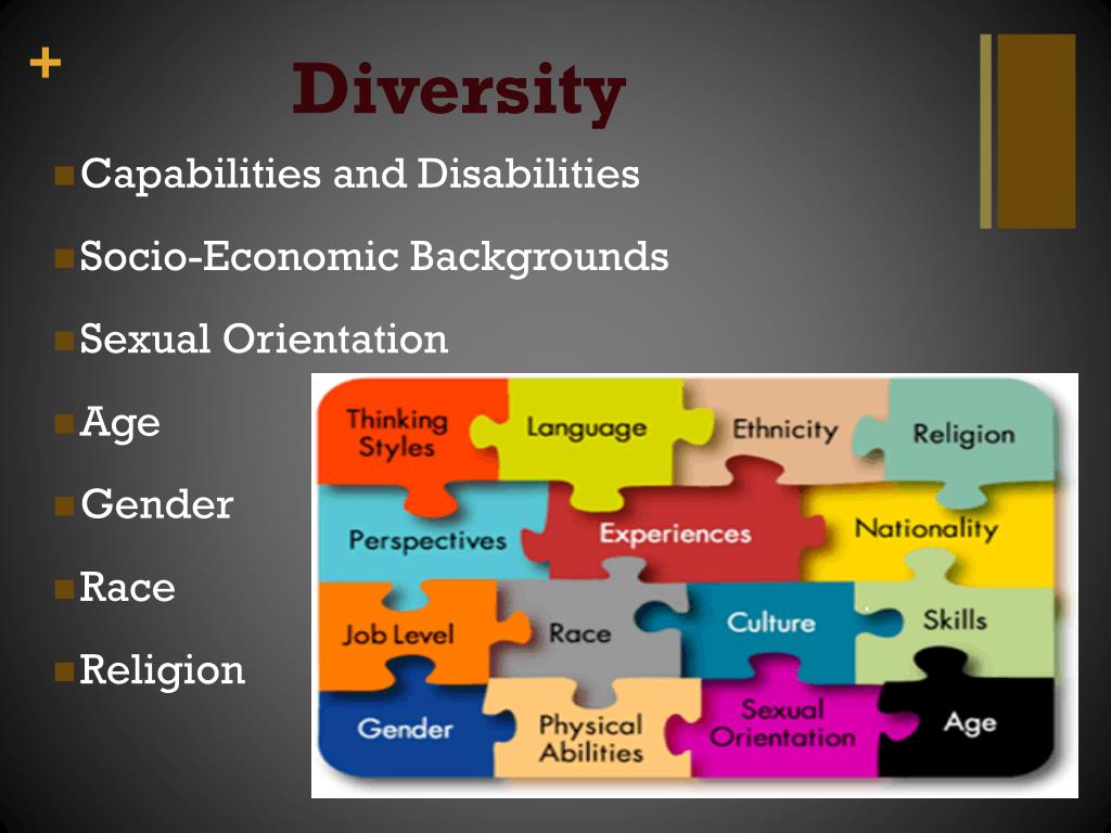 Diversity • Capabilities and Disabilities • Socio-Economic Backgrounds • Sexual Orientation • Age • Gender • Race • Religion