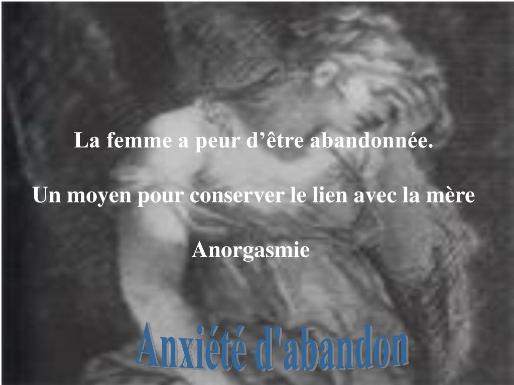 La femme a peur d’être abandonnée. Un moyen pour conserver le lien avec la mère Anorgasmie Anxiété d'abandon