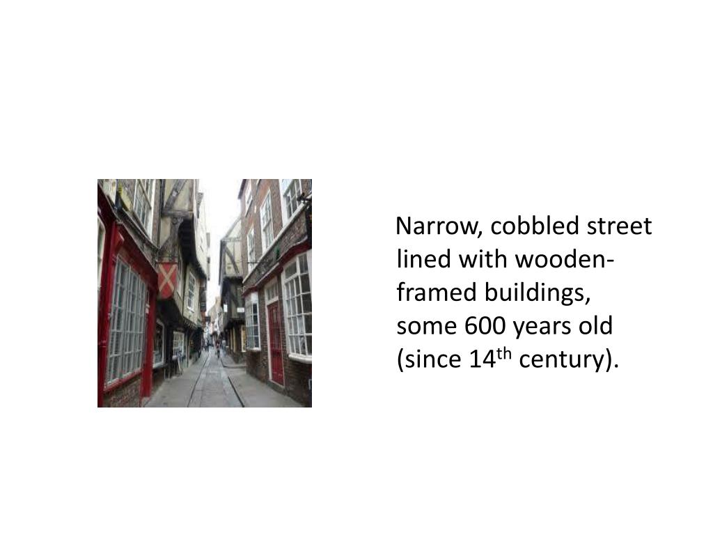 The Shambles York, Britain. ΧΡΙΣΤΙΝΑ ΚΥΡΑΝΟΥ. The Shambles York’s oldest street Europe’s best preserved medieval street. The word Shambles originates from the Medieval word Shamel , which means bench. It was a street of butchers’ shops and houses.