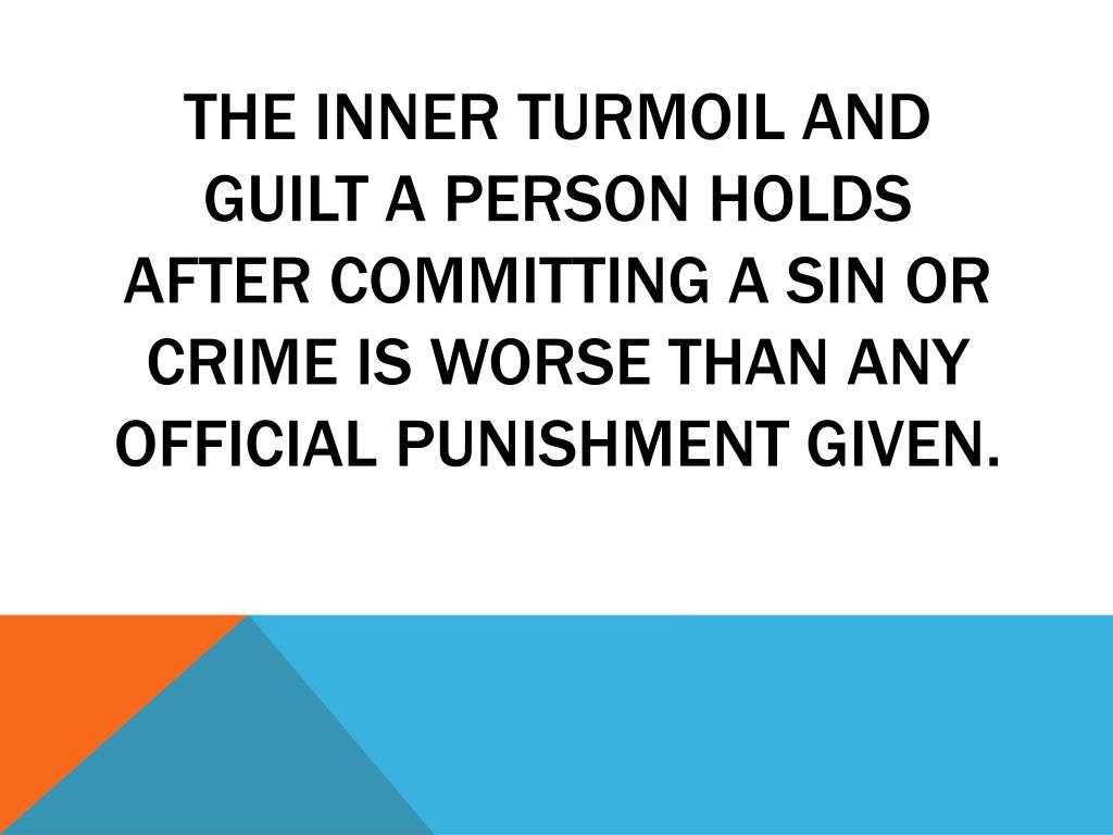The inner turmoil and guilt a person holds after committing a sin or crime is worse than any official punishment given.