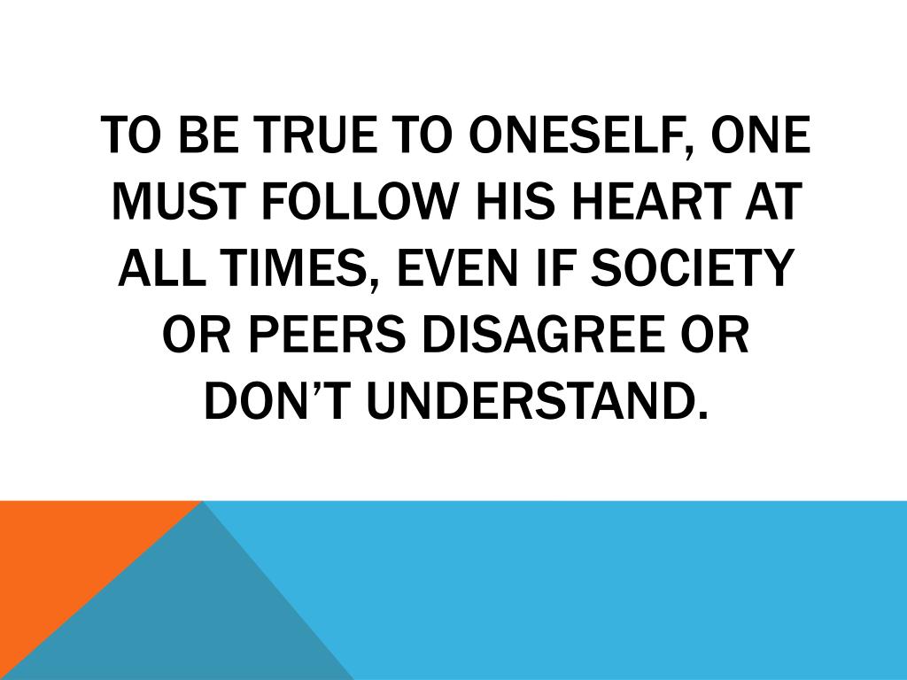 To be true to oneself, one must follow his heart at all times, even if society or peers disagree or don’t understand.