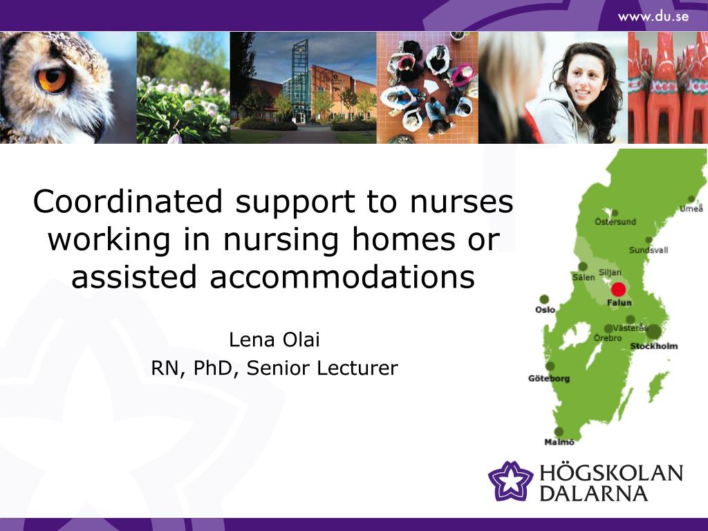 Coordinated support to nurses working in nursing homes or assisted accommodations Lena Olai RN, PhD, Senior Lecturer