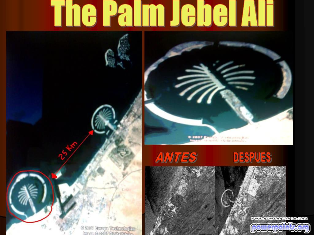 Las Islas Palmeras Todas estas construcciones son un capricho Del príncipe de Dubai The Palm Jebel Ali la segunda Is. la mayor The Palm Jumeirah la Is. mas pequeña Is. del mundo