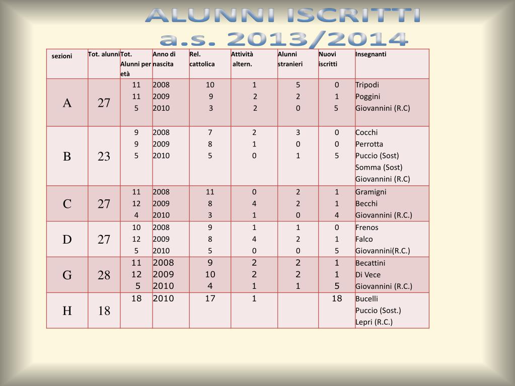 INIZIO LEZIONI: 11-09-2013 TERMINE LEZIONI PRIMARIA E SECONDARIA: 7-06-2014 TERMINE LEZIONI INFANZIA: 30-06-2014 TERMINE LEZIONI POMERIDIANE PRIMARIA: 06/06/2014 TERMINE LEZIONI POMERIDIANE SECONDARIA: 30/05/2014 VACANZE DI NATALE: dal 22-12-2013 al 6-01-2014 VACANZE DI PASQUA: dal 17/04 al 22/04 /2014 TUTTI I GIORNI FESTIVI E LE DOMENICHE 1 NOV 2013; 8 DICEMBRE 2013 25 APR. 2014; 1° MAGGIO 2014 e 2 GIU. 2014 LE LEZIONI SONO SOSPESE:2 NOV. 2013; 26 APR. 2014; 2 e 3 MAGGIO 2014 LA SCUOLA È CHIUSA NEI GIORNI: 24/12/2013; 31/12/2013; 19/04/2014; 16/08/2014 e il sabato nei mesi di luglio e agosto 173 giorni di scuola