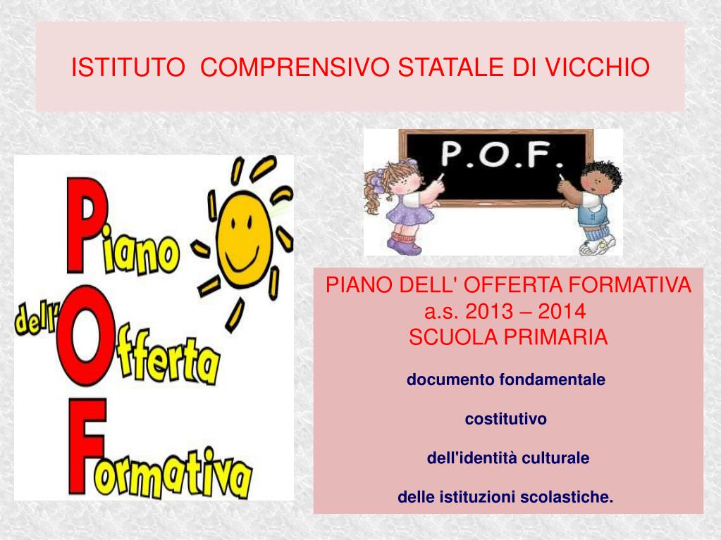 ISTITUTO COMPRENSIVO STATALE DI VICCHIO PIANO DELL' OFFERTA FORMATIVA a.s. 2013 – 2014 SCUOLA PRIMARIA documento fondamentale costitutivo dell'identità culturale delle istituzioni scolastiche.