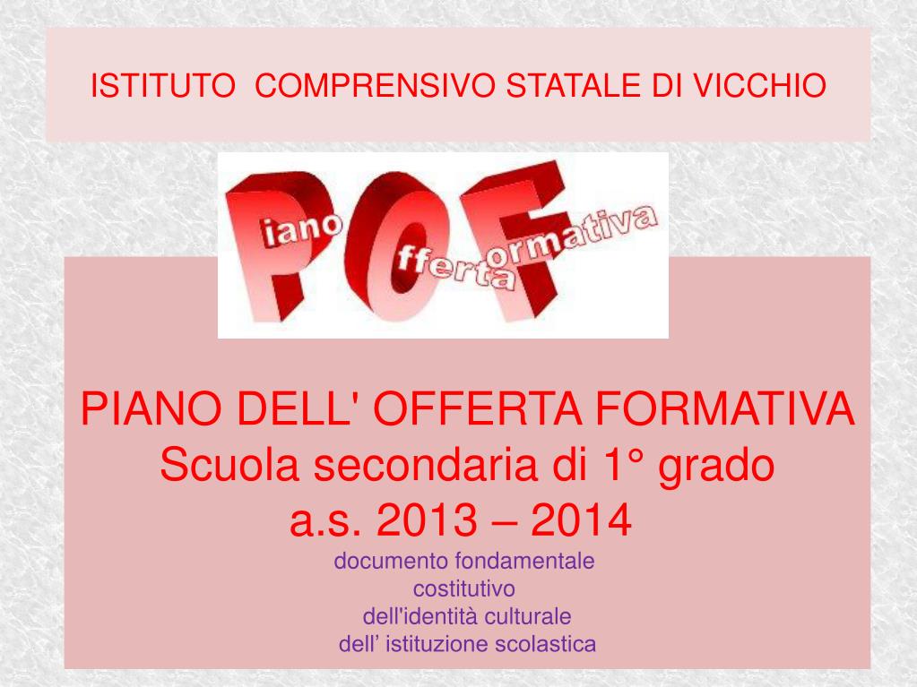 ISTITUTO COMPRENSIVO STATALE DI VICCHIO PIANO DELL' OFFERTA FORMATIVA Scuola secondaria di 1° grado a.s. 2013 – 2014 documento fondamentale costitutivo dell'identità culturale dell’ istituzione scolastica
