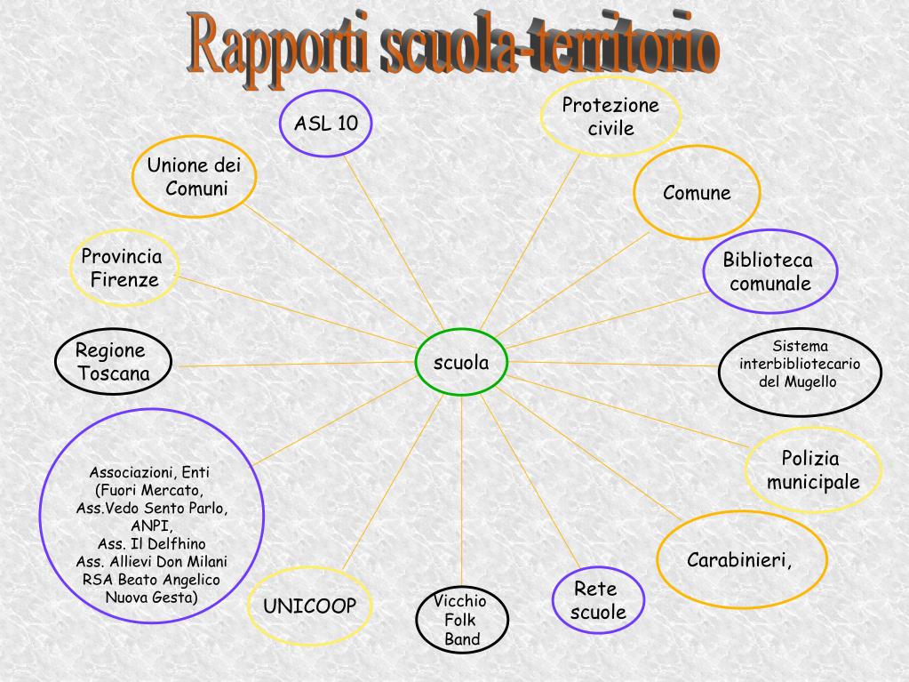 Protezione civile ASL 10 Unione dei Comuni Comune Biblioteca comunale Provincia Firenze Sistema interbibliotecario del Mugello Regione Toscana scuola Associazioni, Enti (Fuori Mercato, Ass.Vedo Sento Parlo, ANPI, Ass. Il Delfhino Ass. Allievi Don Milani RSA Beato Angelico Nuova Gesta) Polizia municipale Carabinieri, UNICOOP Rete scuole Vicchio Folk Band Rapporti scuola-territorio