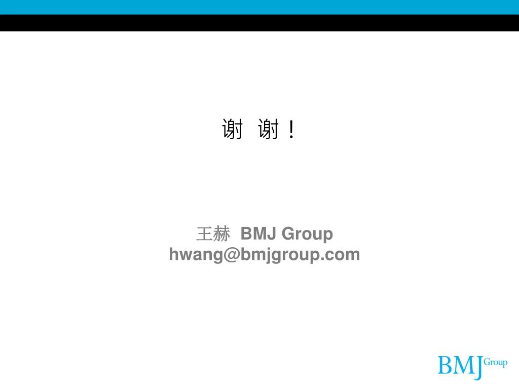 谢 谢! 王赫 BMJ Group hwang@bmjgroup.com