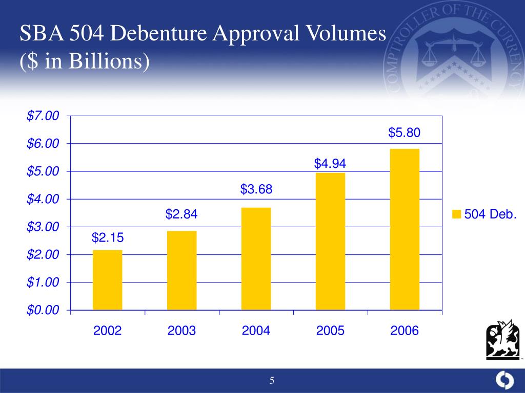 SBA 504 Program History • Started in 1981 by the U.S. Small Business Administration (SBA) to promote economic development, create new and retain existing jobs, and meet other public policy goals (e.g. minorities, rural markets, etc.). • SBA has licensed 275 Certified Development Companies (CDC) across the country to process, close and service the SBA guaranteed second lien. • SBA 504 program over 20 year history has funded 69,987 loans for $27.9 billion of 2nd position loans.