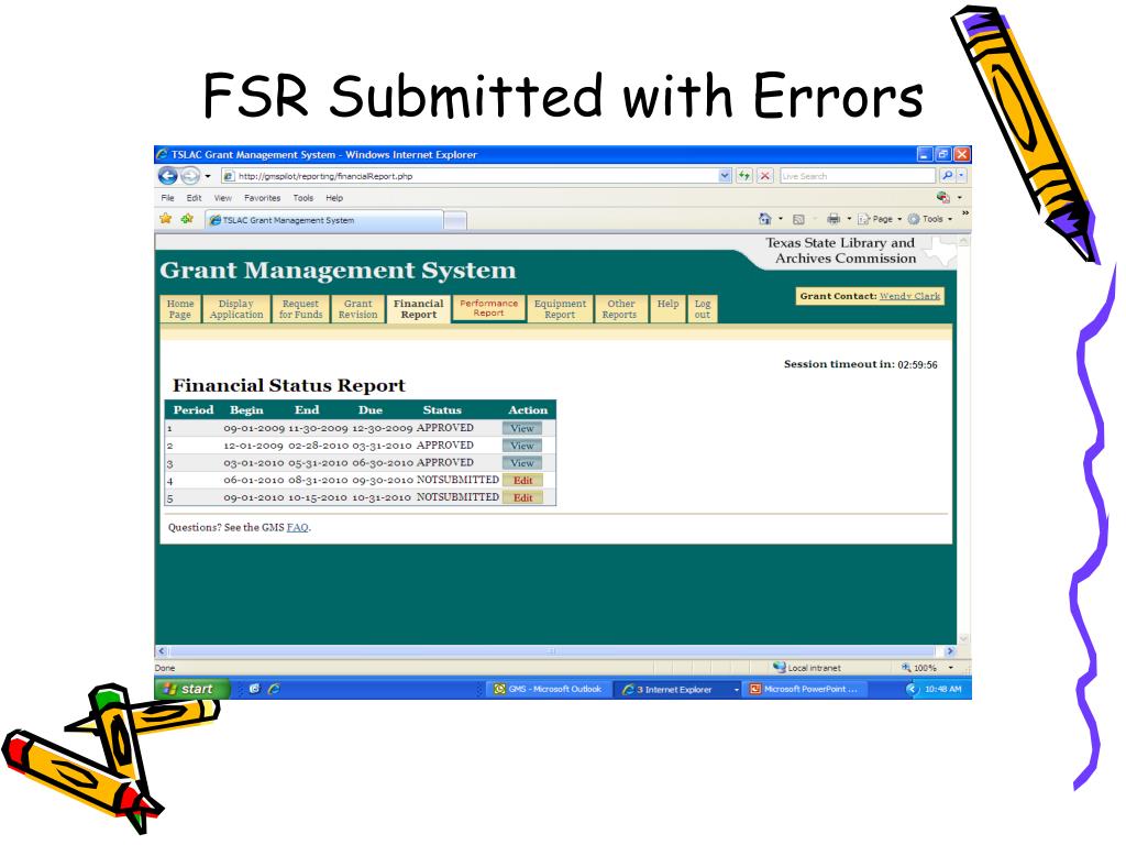 FSR Tips • Instruction link at top of form will provide step by step instructions. • Do not try to enter information into grayed out cells – these cells are auto filled by GMS. • Do not check Final if you have not spent all grant money and/or you haven’t received all grant money from TSLAC. • Contact myself or Wendy if you ever have any questions – We are here to help!!