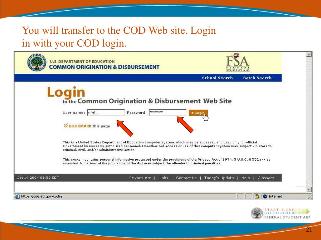 Login Start at the Direct Loan Servicing Web site for Schools and select Login.