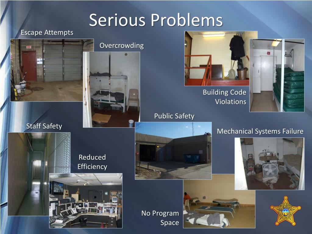 Serious Problems EscapeAttempts Overcrowding Building Code Violations Public Safety Staff Safety Mechanical Systems Failure Reduced Efficiency No Program Space