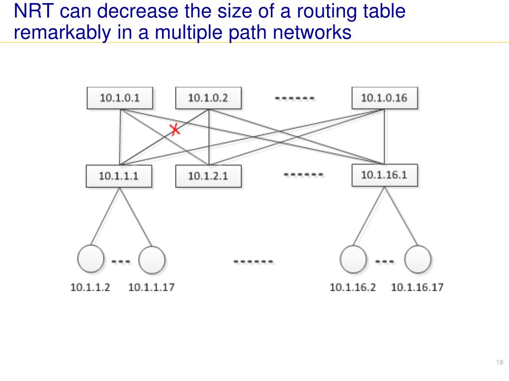 NRT can decrease the size of a routing table remarkably in a multiple path networks