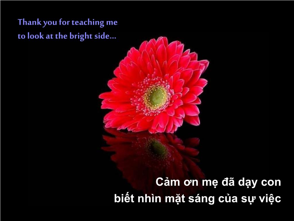 Thank you for teaching me to look at the bright side... Cảm ơn mẹ đã dạy con biết nhìn mặt sáng của sự việc