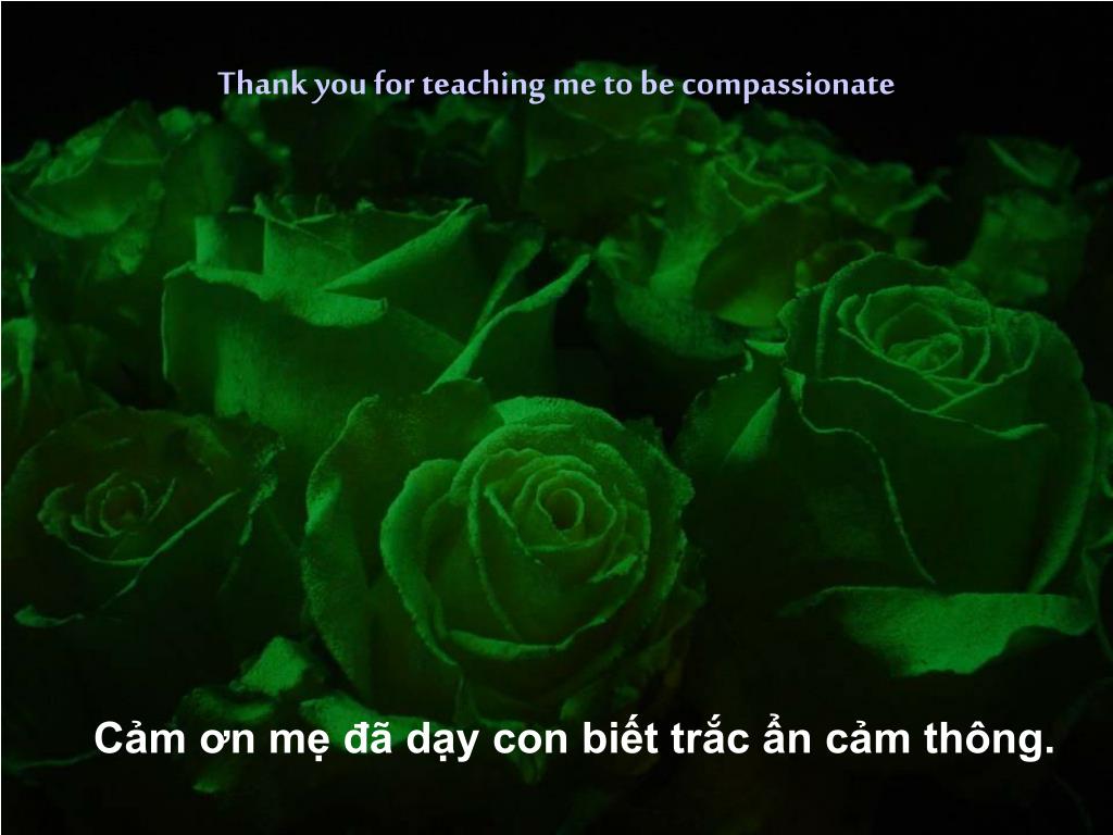 Thank you for teaching me to be compassionate Cảm ơn mẹ đã dạy con biết trắc ẩn cảm thông.