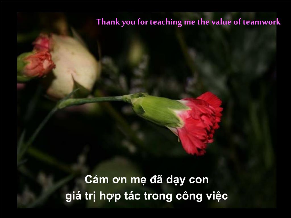 Thank you for teaching me the value of teamwork Cảm ơn mẹ đã dạy con giá trị hợp tác trong công việc