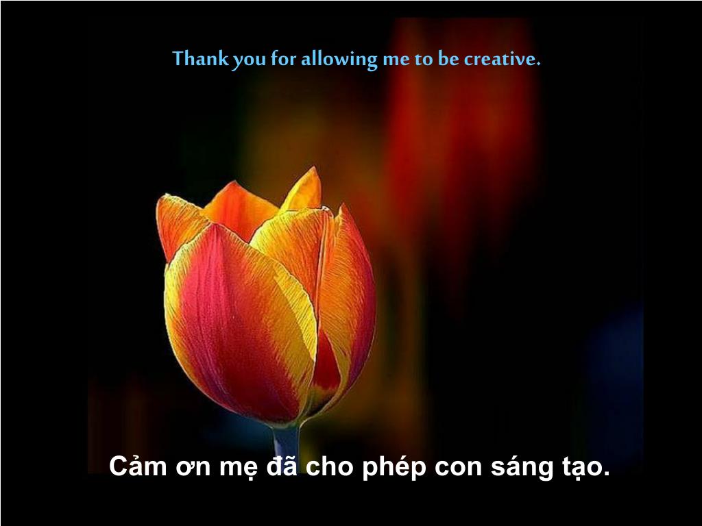 Thank you for allowing me to be creative. Cảm ơn mẹ đã cho phép con sáng tạo.