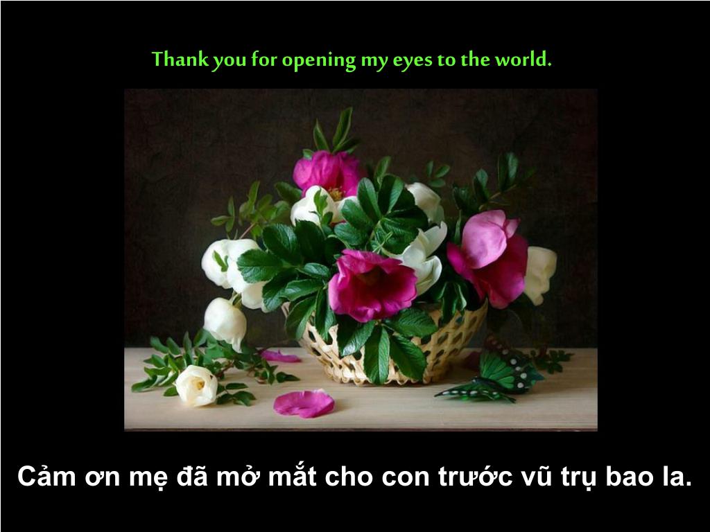 Thank you for opening my eyes to the world. Cảm ơn mẹ đã mở mắt cho con trước vũ trụ bao la.