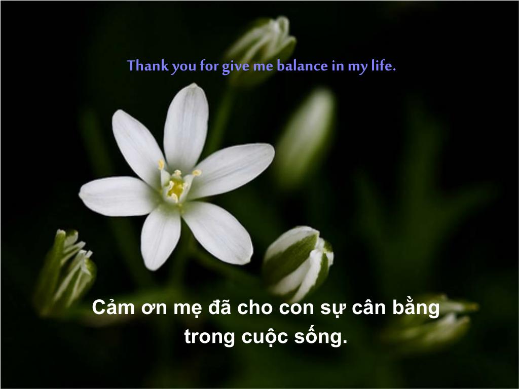 Thank you for give me balance in my life. Cảm ơn mẹ đã cho con sự cân bằng trong cuộc sống.
