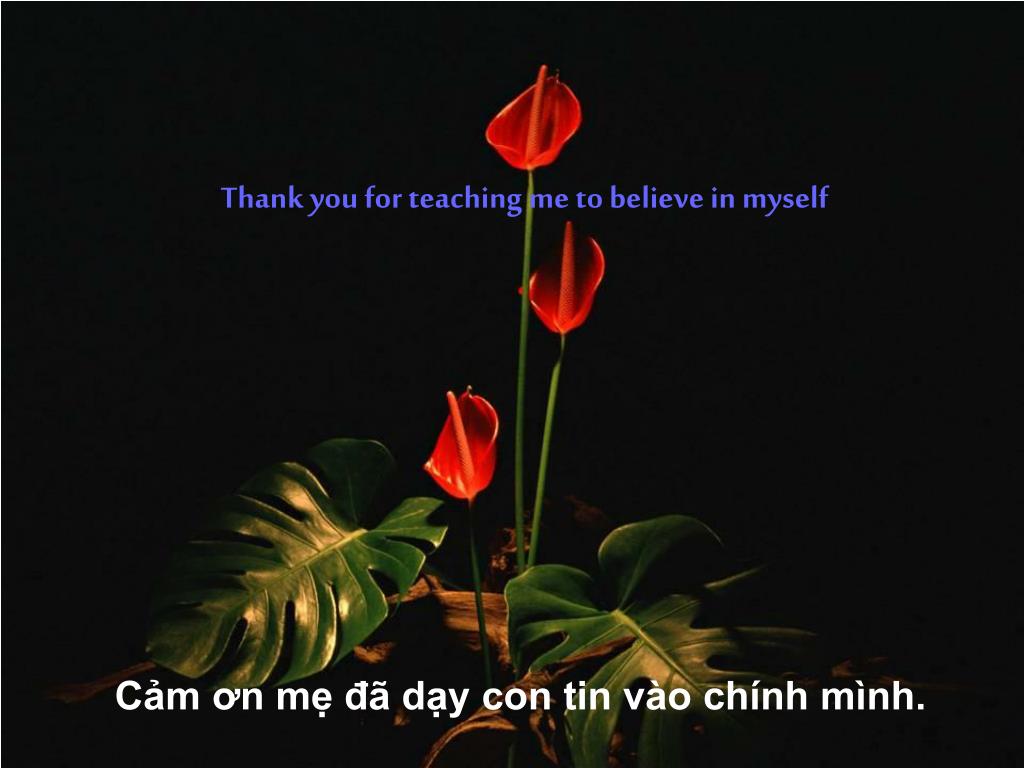 Thank you for teaching me to believe in myself Cảm ơn mẹ đã dạy con tin vào chính mình.