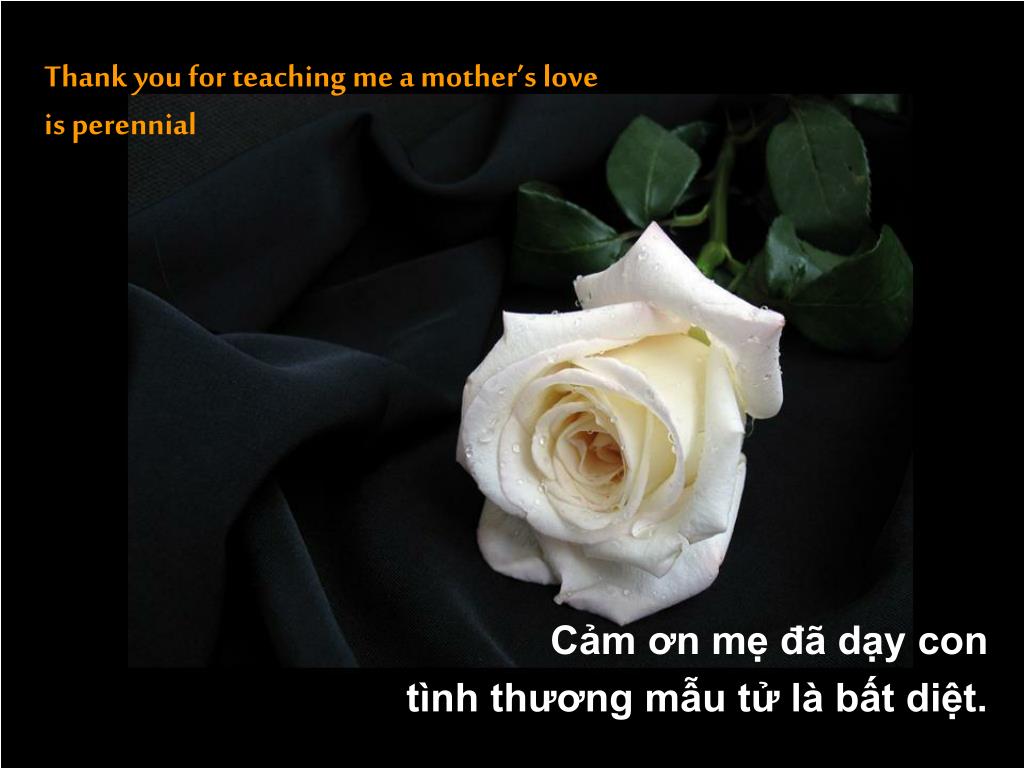 Thank you for teaching me a mother’s love is perennial Cảm ơn mẹ đã dạy con tình thương mẫu tử là bất diệt.