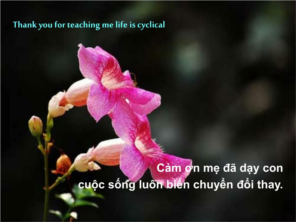 Thank you for teaching me life is cyclical Cảm ơn mẹ đã dạy con cuộc sống luôn biến chuyển đổi thay.