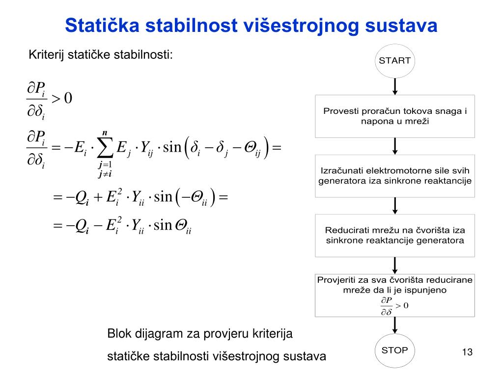 Statička stabilnost višestrojnog sustava Kriterij statičke stabilnosti: Blok dijagram za provjeru kriterija statičke stabilnosti višestrojnog sustava