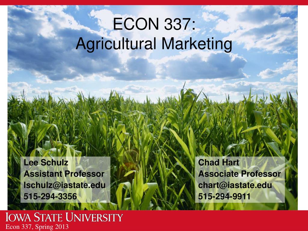 ECON 337: Agricultural Marketing Lee Schulz Assistant Professor lschulz@iastate.edu 515-294-3356 Chad Hart Associate Professor chart@iastate.edu 515-294-9911