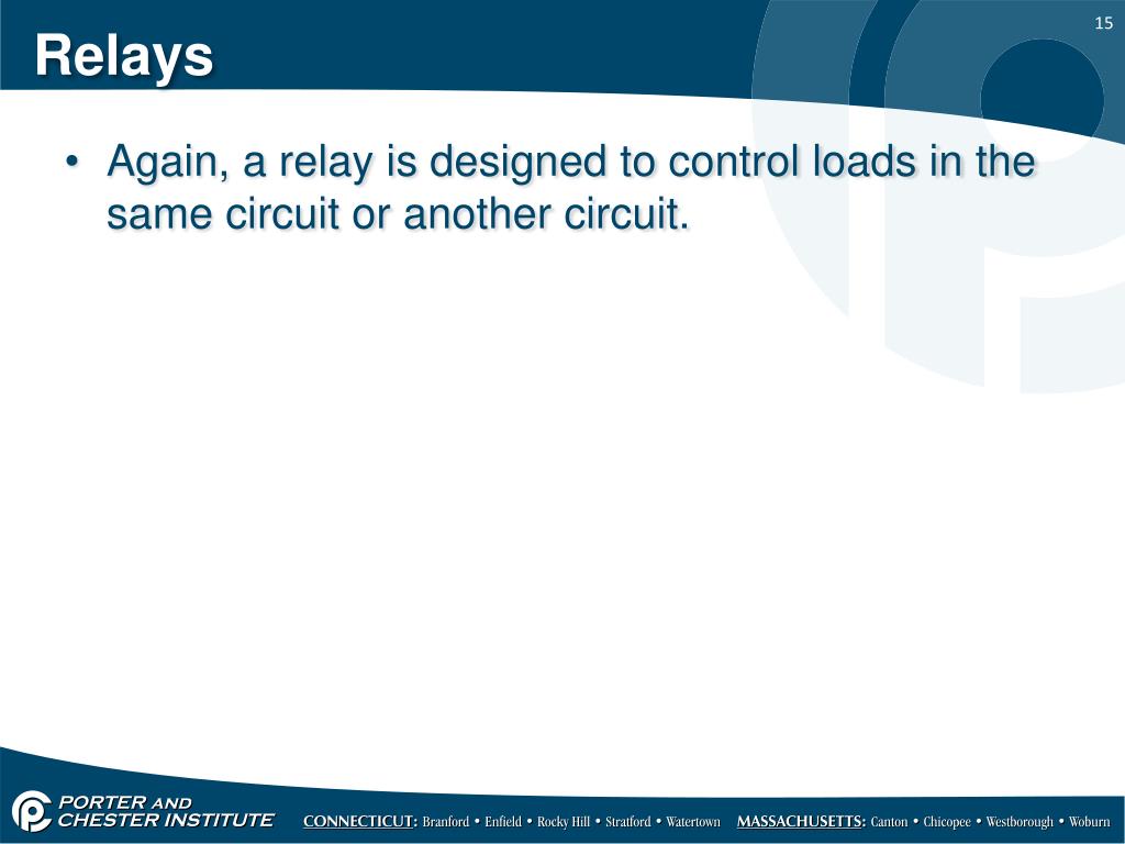 Relays • Again, a relay is designed to control loads in the same circuit or another circuit.
