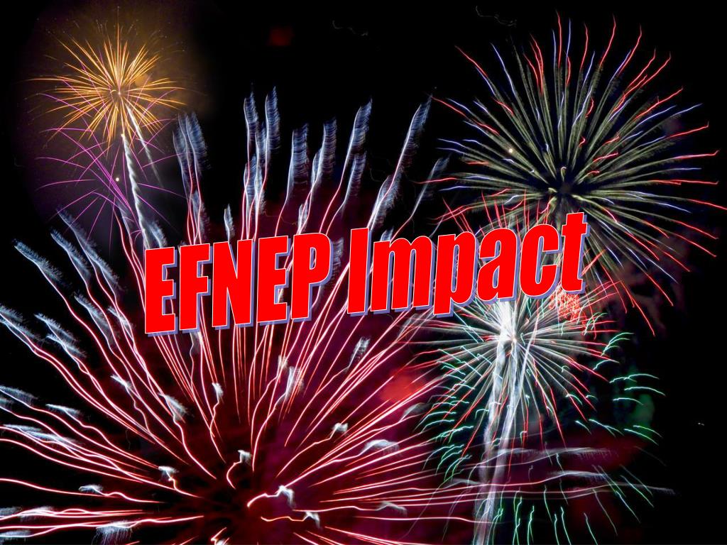 National EFNEP Impact • Overall diet improvement in all food groups • Preventing food-borne illness through improved safety practices • Collaboration with other agencies reinforces common nutrition message