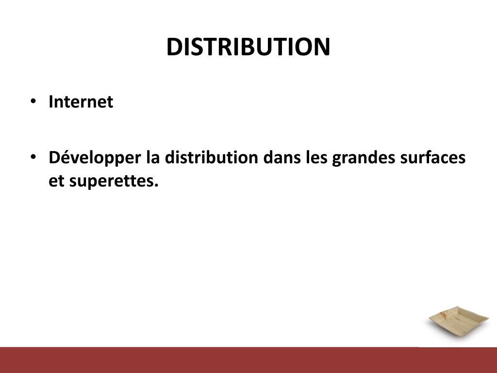 DISTRIBUTION • Internet • Développer la distribution dans les grandes surfaces et superettes.