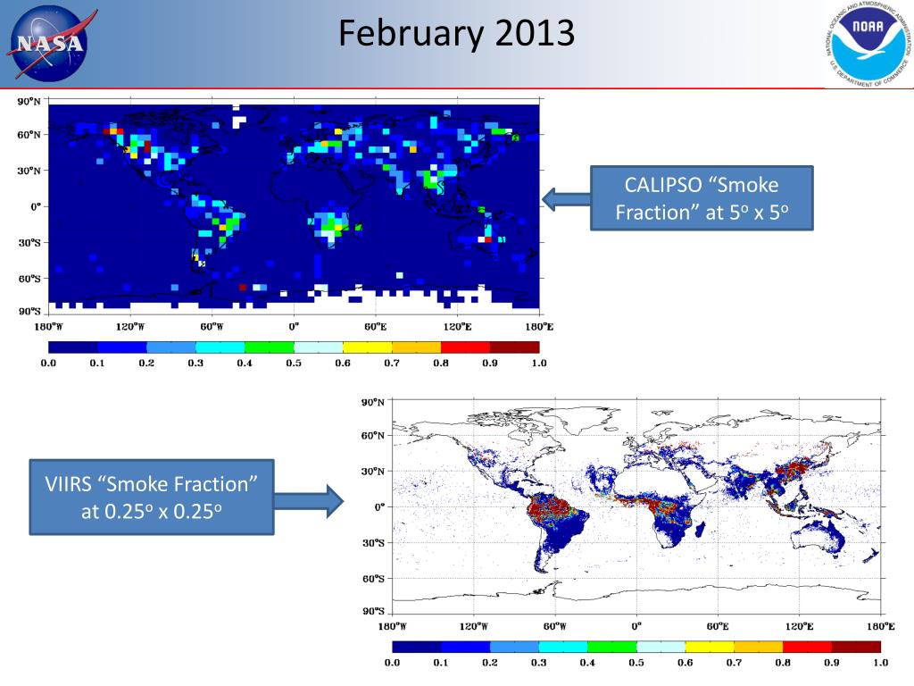 February 2013 CALIPSO “Smoke Fraction” at 5o x 5o VIIRS “Smoke Fraction” at 0.25o x 0.25o