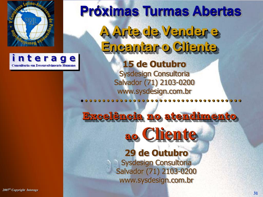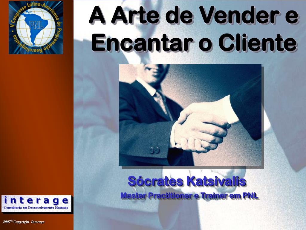 A Arte de Vender e Encantar o Cliente A Arte de Vender e Encantar o Cliente A Arte de Vender e Encantar o Cliente A Arte de Vender e Encantar o Cliente Orkut: “PNL nas empresas” Sócrates KatsivalisMaster Practitioner e Trainer em PNL (71) 9137-5558 socrates_k@ig.com.br