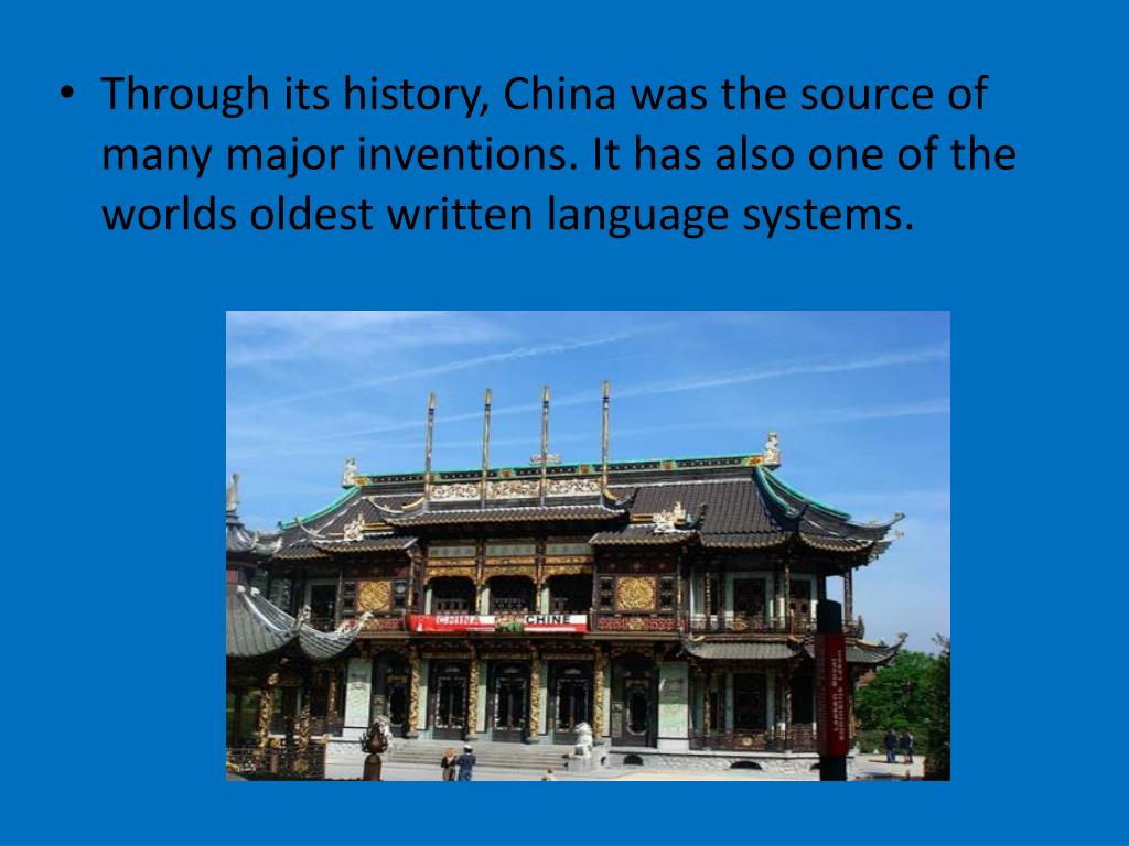 Through its history, China was the source of many major inventions. It has also one of the worlds oldest written language systems.