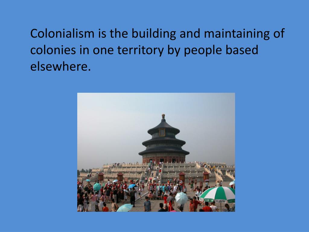 Colonialism is the building and maintaining of colonies in one territory by people based elsewhere.