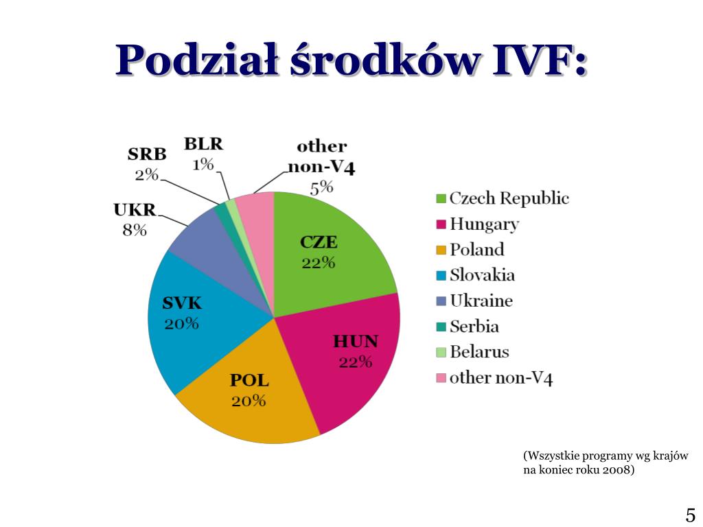 Podział środków IVF: (Wszystkie programy wg krajów na koniec roku 2008) 5