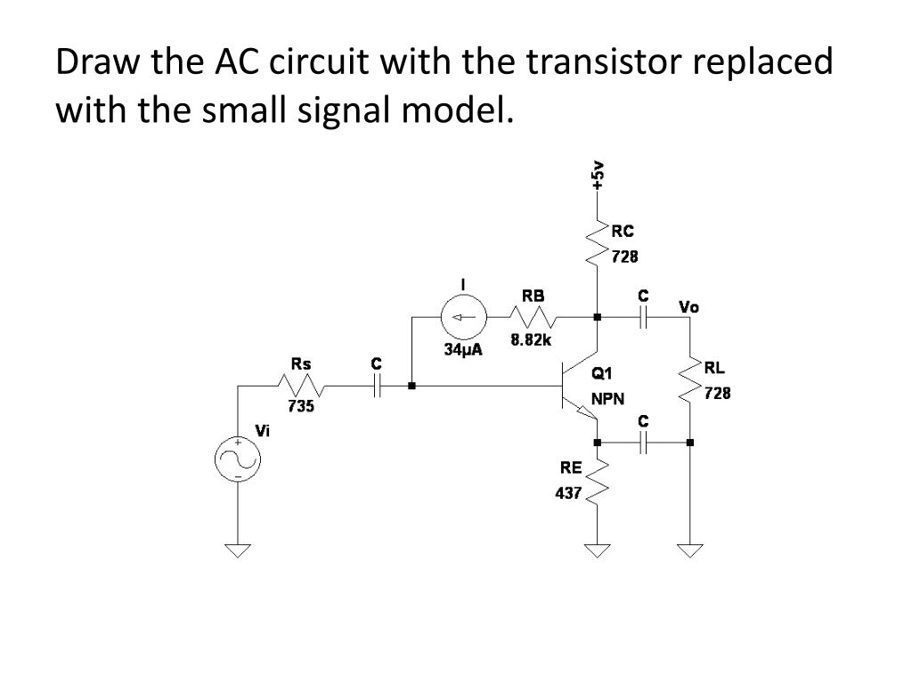 Draw the AC circuit with the transistor replaced with the small signal model.